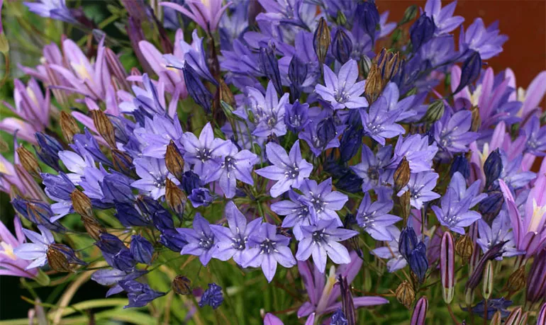 Цветок трителейя (синоним — бродиэя) напоминает небольшой агапантус с зонтиками сине-фиолетовых звездчатых цветов, распускающихся поздней весной. Она любит, когда в вегетационный период солнечно и грунт влажный, а зимой сухой. Мы расскажем, как правильно выращивать трителейю – посадка и уход в открытом грунте, покажем фото интересных сортов.