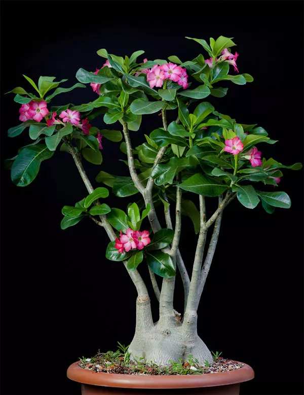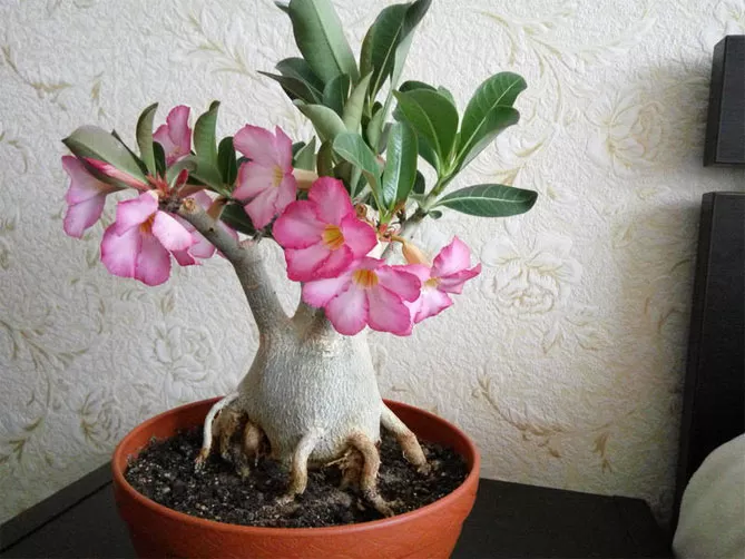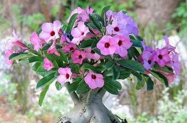 Адениум відноситься до сукулентів – рослинам, пристосованим до життя в умовах обмеженої водності. Вид також називають «Троянда пустелі» або міні-баобаб, він часто вирощується як бонсай. Створити бонсай з рослини дуже просто, тому що адениум формує його практично самостійно. Завдяки гарним квітам він стане оригінальною прикрасою будь-якого дому.