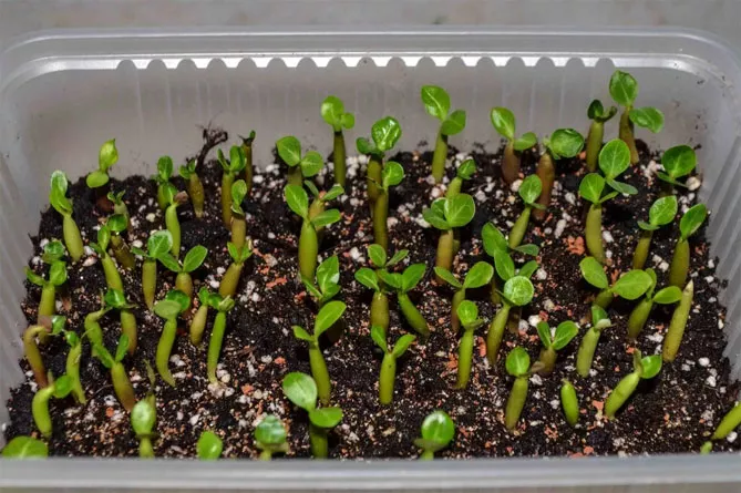 Адениум можна виростити з насіння в домашніх умовах. Насіння замочують у теплій воді (25 градусів) на 48 годин.