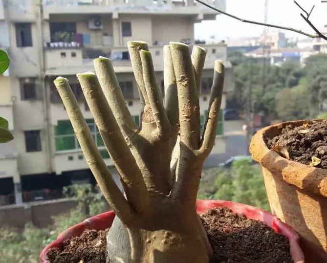 Слабкий субстрат має незаперечну перевагу – змушує рослину виробляти гілочки. Адениум швидше збільшує кількість листя та молодих пагонів, що містять хлорофіл, щоб мати можливість поглинати якомога більше поживних речовин за допомогою фотосинтезу. При цьому формування каудексу починається швидше, навіть для таких видів адениумів, як мультифлорум, який роками росте тонким і тільки потім починає збільшуватися в ширину.