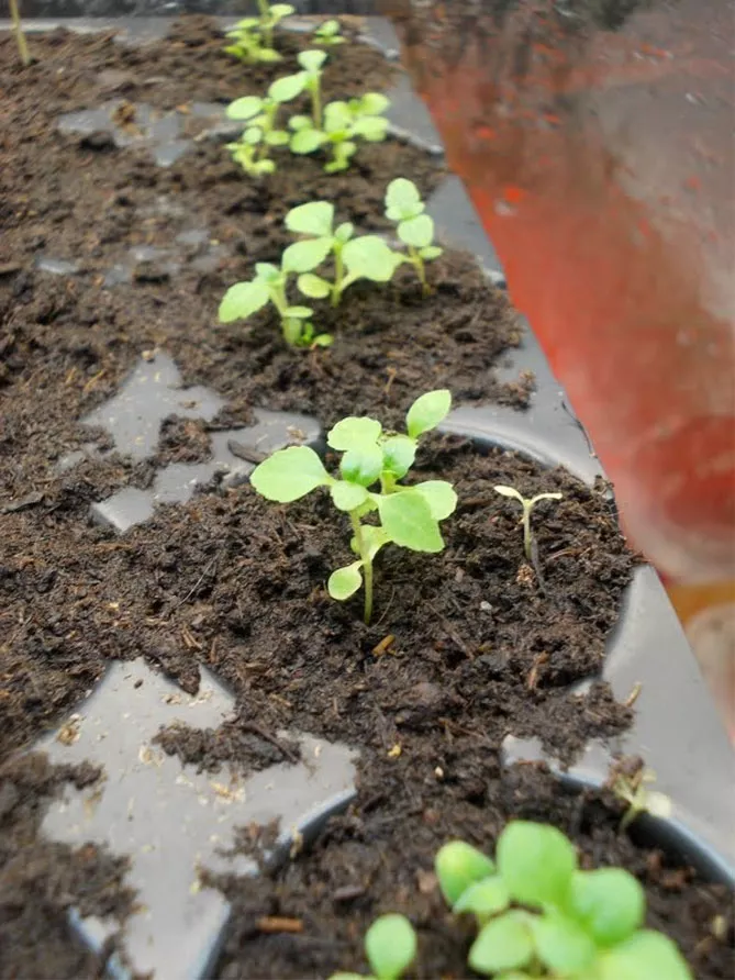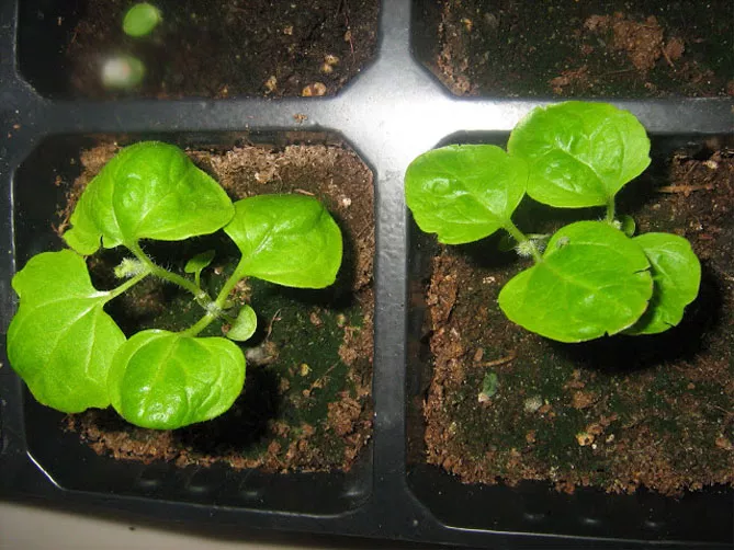 - Пікірування розсади. Після появи кількох справжніх листочків сходи можна пікірувати (пересадити) у більші горщики. При пікіруванні кінчик кореня відрізається, завдяки чому коренева система саджанця росте краще, сильніша. За третьою парою листків також варто прищипнути верхівку основного пагона та бічні пагони, що призведе до кращого розгалуження рослин.