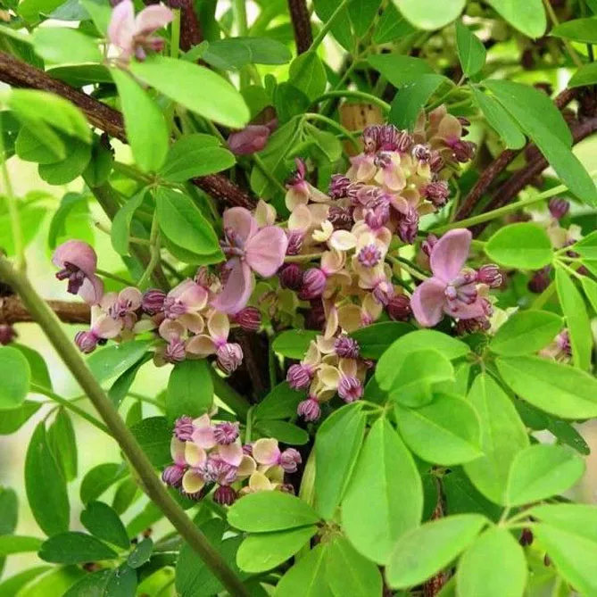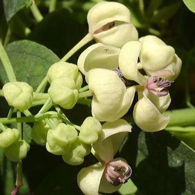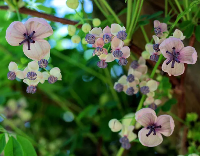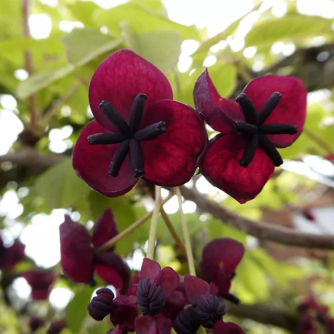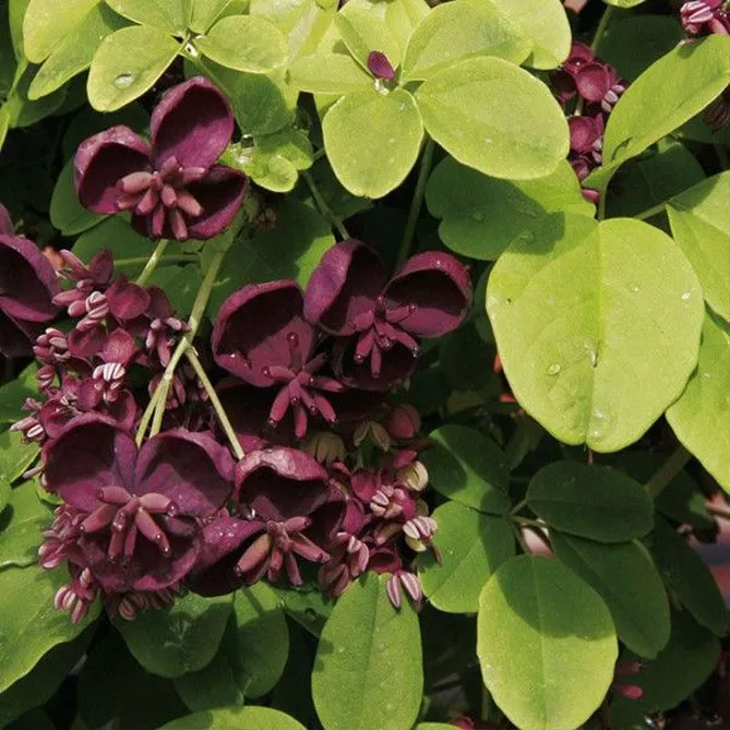 Легка у вирощуванні та невибаглива, Akebia quinata, як і гібрид Akebia x pentaphylla, рясно й рано цвіте з квітня по травень. Численні квіти з ароматом ванілі чи шоколаду, що утворюють своєрідні дзвіночки, широко розкриваються. Вони бувають у різних відтінках: від темно-рожевого до пурпурно-фіолетового, винного, кремово-білого кольору.