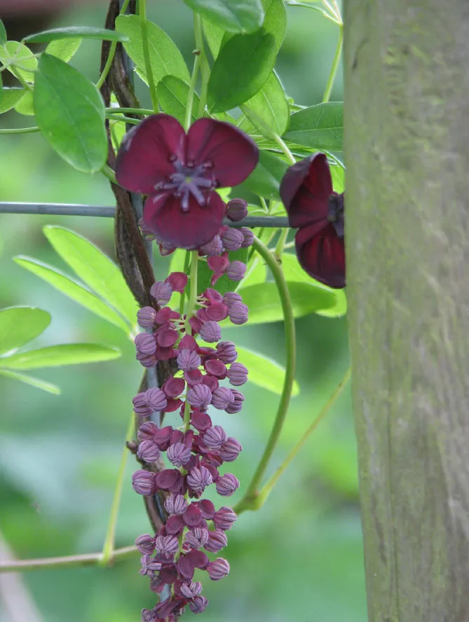 - Akebia longeracemosa – Акебія довгоквіткова (з довгою китицею квітів).