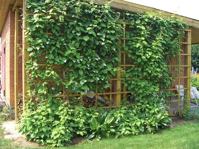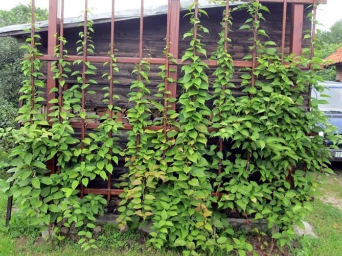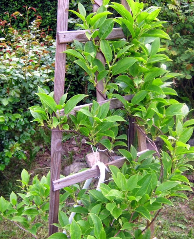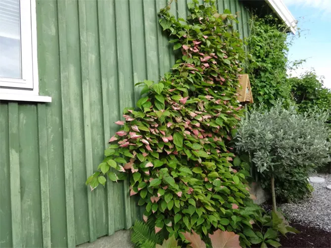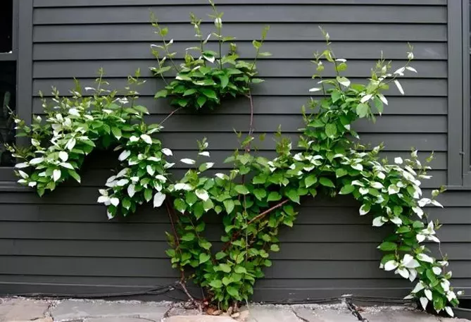 Якщо потрібно, щоб актинідія росла біля стіни або іншої плоскої поверхні, потрібно забезпечити вертикальні елементи за кілька сантиметрів від стіни, наприклад, міцні ланки, товсті планки. Рослини висаджують на відстані не менше 50 см від опори.