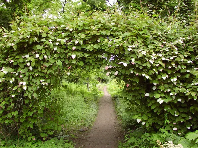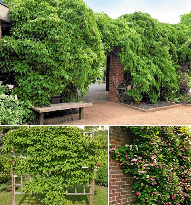 Декоративна виюча рослина з листям рожево-біло-зеленого кольору. Виростає до 3-4 метрів. Квітки злегка ароматні, білі, з'являються у травні. Маленькі плоди ліани досягають зрілості та падають у серпні.