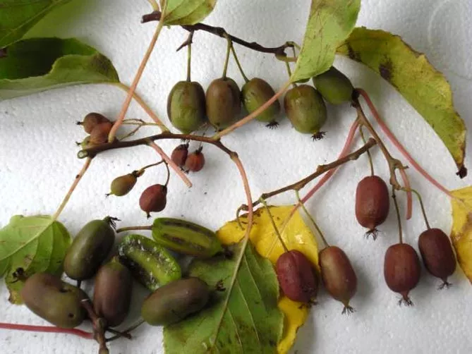 Фото – плод актинідії - Кущі бувають одностатевими або двостатевими. Одностатеві рослини не потребують запилення – чоловічі та жіночі квіти знаходяться на одному кущі. Двостатевим ліанам потрібно посадити принаймні 2 екземпляри на ділянці – чоловічу рослину та жіночу, яка після запилення дає плоди.