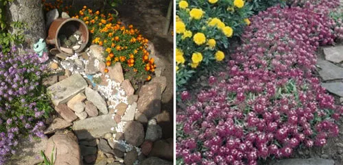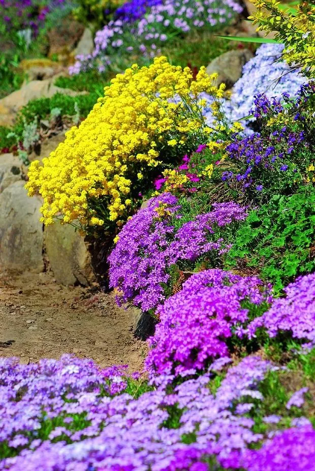 Весняної пори золотисто-жовтими квітами порадує грядки скельний вид, з літа до осені нас тішитиме алісум морський з білими, рожевими або фіолетовими квітами. Квітки невеликі, але численні, розташовані на одному стеблі, зібрані в так звані грона. Пагони з квітами досягають довжини 30 см, ростуть із розетки подовжених листків сірувато-зеленого кольору.