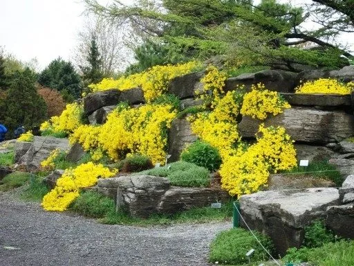 Вирощується в садах, сорт з високими декоративними якостями. Невеликі вимоги до місця існування. У квітні вкривається тисячами жовтих квітів, створюючи цікаві сонячні подушки, що відмінно контрастують з іншими квітами, наприклад, з фіолетовим флоксом. Родом з гірських районів Європи та Азії. Кущик із дерев'янистими пагонами. Квіти зібрані в волоть. Листки ланцетні, сіро-зелені. Кущ досягає висоти 30 см. Після відцвітання, якщо не потрібно, щоб рослина продукувала насіння, обрізаємо квіти і очікуємо цвітіння знову.