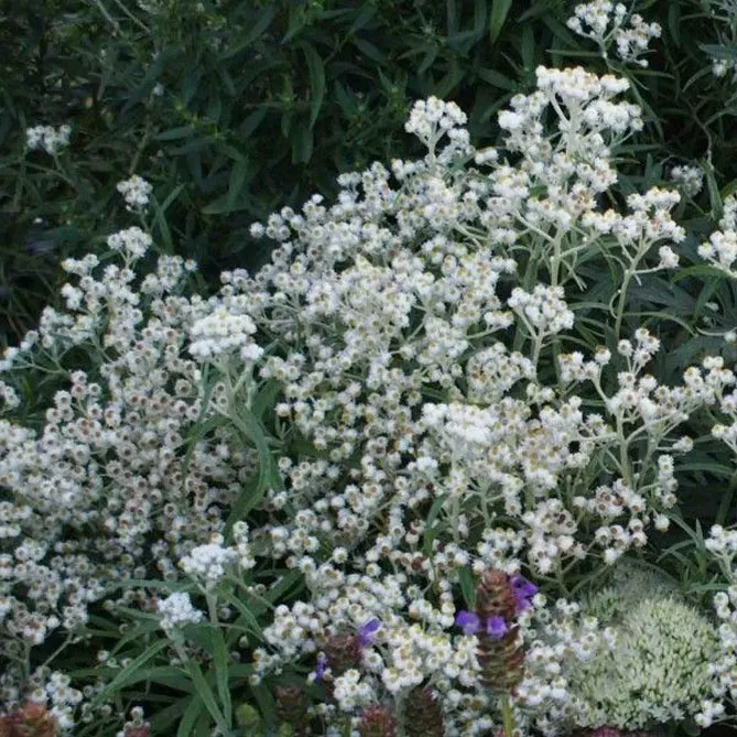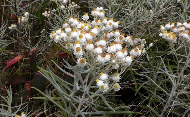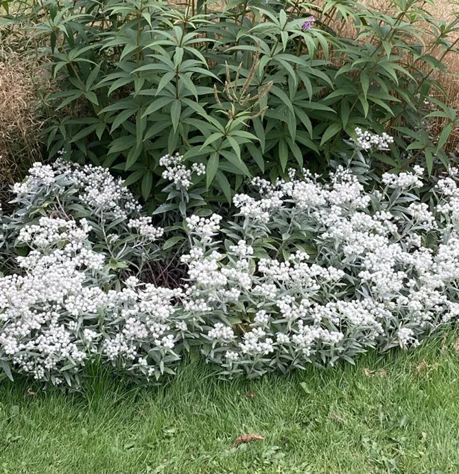 Вид анафаліс трижилковий (Anaphalis triplinervis) цвіте з липня по вересень. Висота у зрілості – 40 см. Дуже витривалий вид з рясними білими квітами та повстистим сірим листям прикрасить кінець сезону.