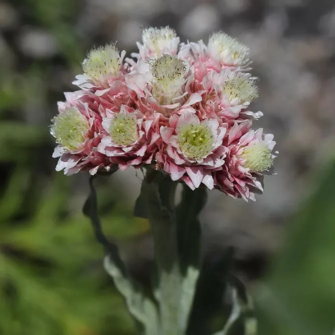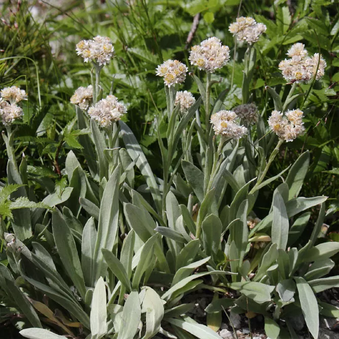 Анафаліс альпійський або високогірний (Anaphalis alpicola) цвіте з липня по серпень. Висота у зрілості – 25 см. Цей альпійський вид утворює низький ґрунтовий покрив з сірим листям, вкритим тонким пухом. Дає гарні квіти для сухих букетів.