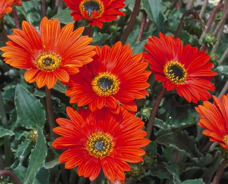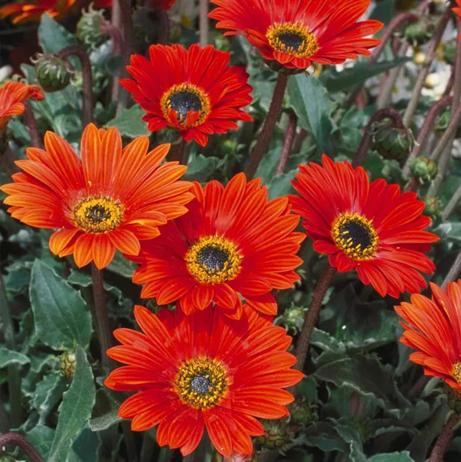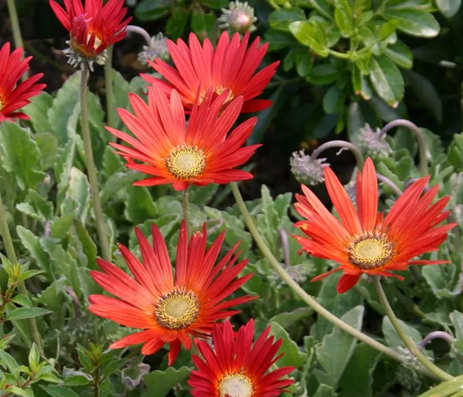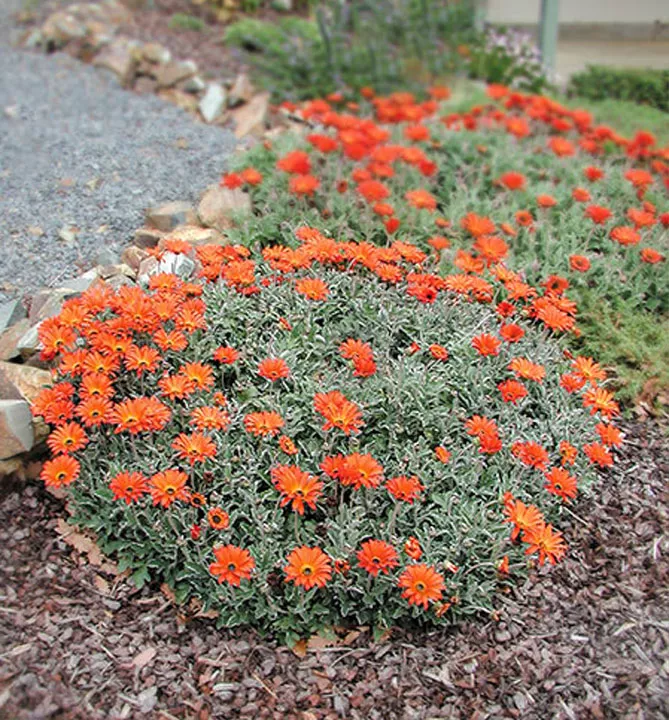 - «Ханна» (Hannah). Великі темно-червоні квіти, темно-коричневий центральний диск, квітка схожа на гербери. Висота рослин 40 см, ширина 50 см. Сіра, опушена листва, напіввічнозелена.