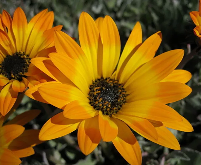 Ботанічний вид Арктотис короткостеблий (Arctotis breviscapa) досягає висоти 25 см і ширини 40 см. Квіти помаранчеві з жовтою серединкою.