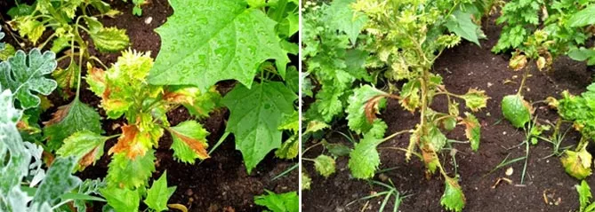 Зморшкуваті, завиті листки – ознака цієї інфекції. Вірусне захворювання призводить до інгібування росту астр. Жодні препарати не допоможуть. Потрібно викопати рослини і спалити.
