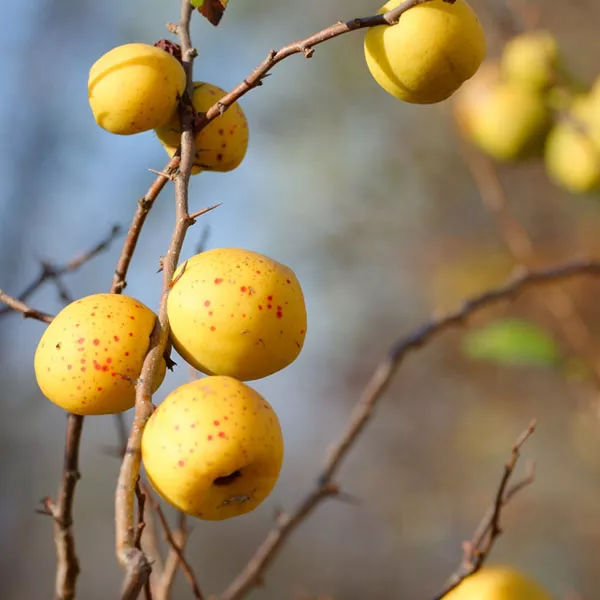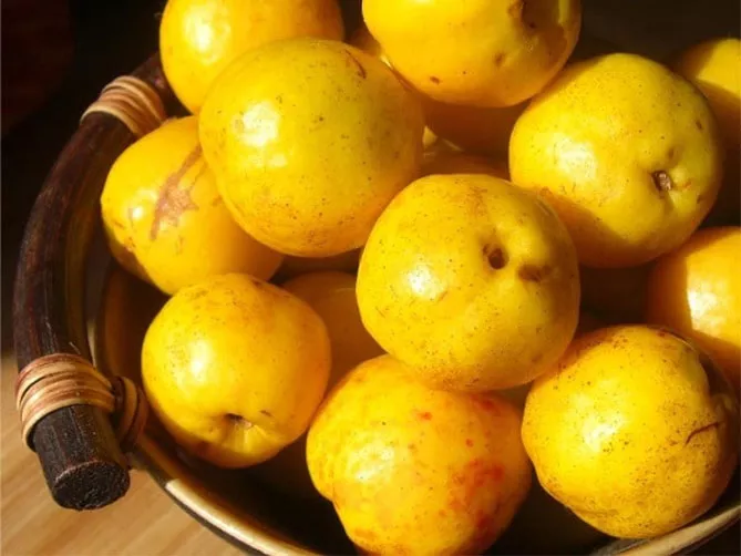 Особливе визнання і популярність отримали плоди чагарника, які дозрівають у жовтні і досягають 5 сантиметрів у діаметрі. Спочатку вони зелені, потім набувають жовтого кольору, шкірка стає злегка восково-жовтою, іноді з легким рум'янцем або червоними плямами. Вони вважаються справжнім скарбом вітамінів (С, А, В1, В2 і РР), мінералів (молібден, фосфор, залізо, магній, натрій, мідь, цинк), пектинів, органічних кислот.