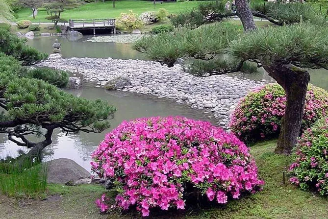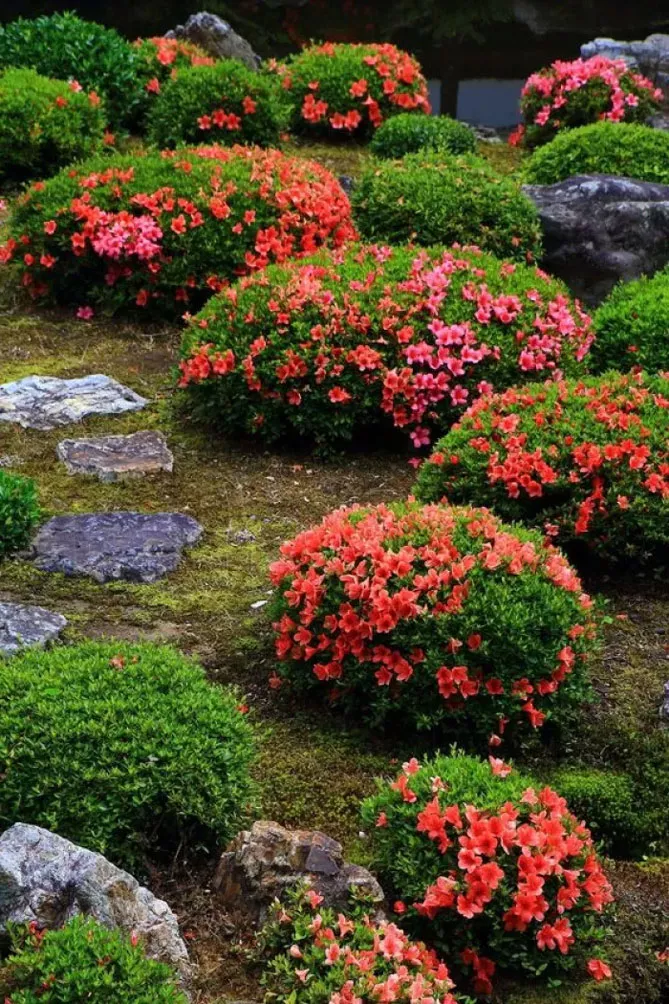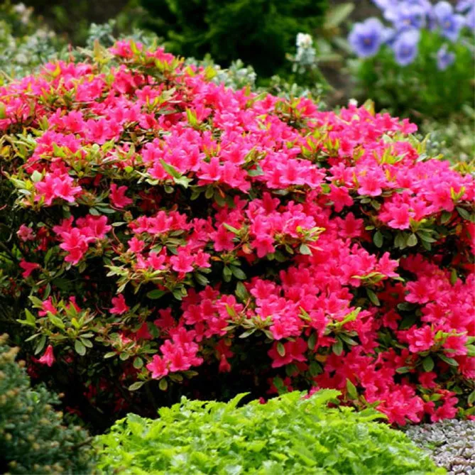 Хвойні чагарники стануть гарним доповненням до азалій – особливо сосни, які, крім цікавих форм і забарвлень, мають хвою, що мульчує і підкислює ґрунт.