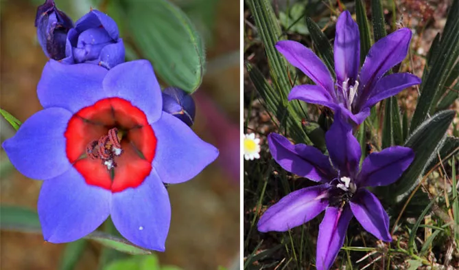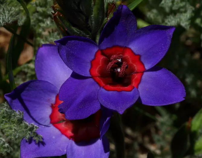 Бабіана червоно-синя (лат. Babiana rubrocyanea) також популярна завдяки ранньому цвітінню (в кінці зими) та темно-фіолетовим квіткам із червоним центром.