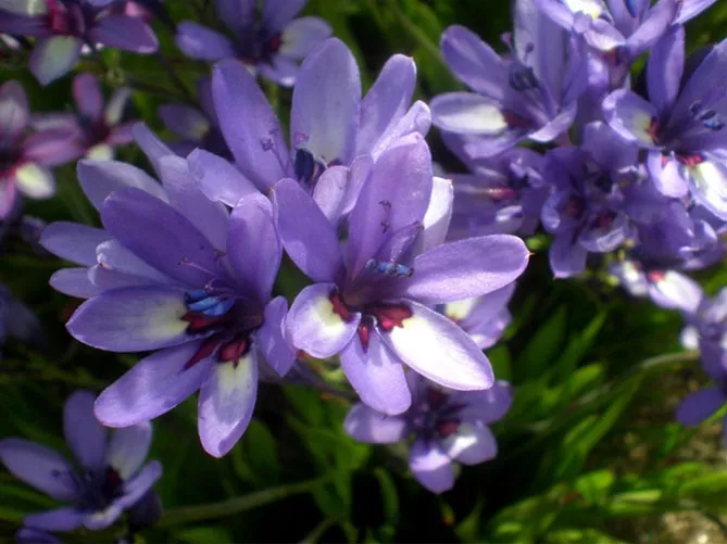 - Квіти – білого чи фіолетово-синього кольору. Оцвітина шестилисточкова. У квітки 3 тичинки та маточка, яка ділиться на три рильця. Нектар виробляється переважно біля основи віночка.