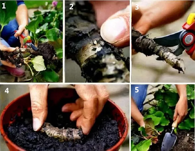 Кореневища ділять на фрагменти по кілька сантиметрів (мінімум 3 см), а потім вкорінюють у ящиках, заповнених сумішшю торфу і піску. Коли корені пускають пагони, їх можна саджати в окремі горщики.
