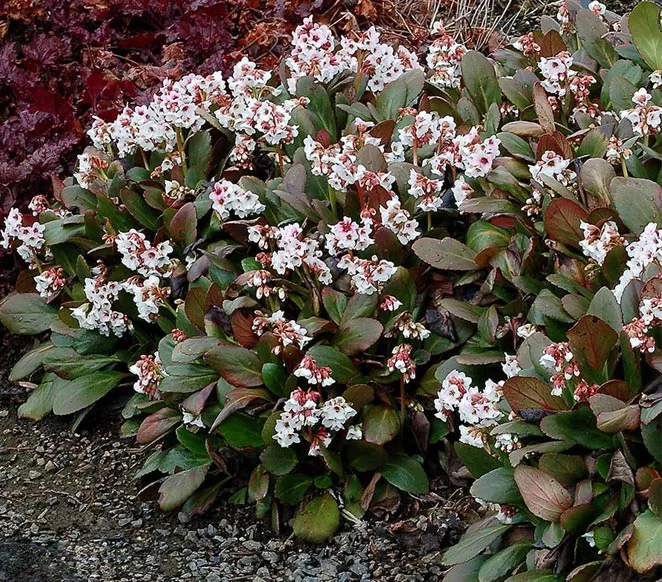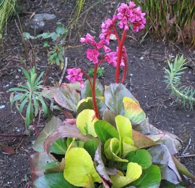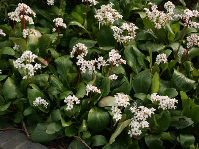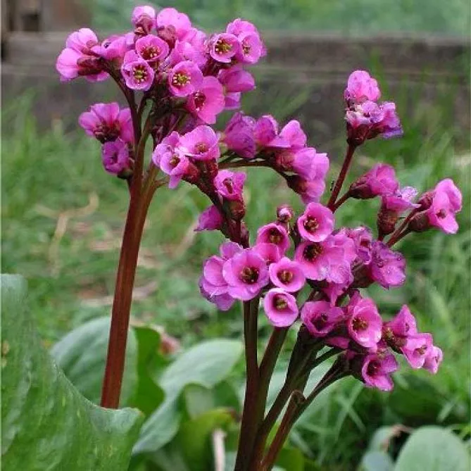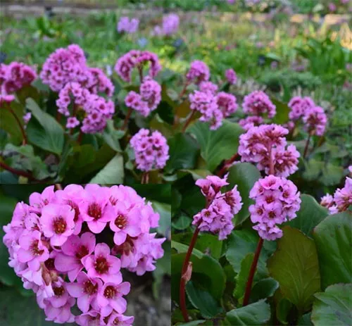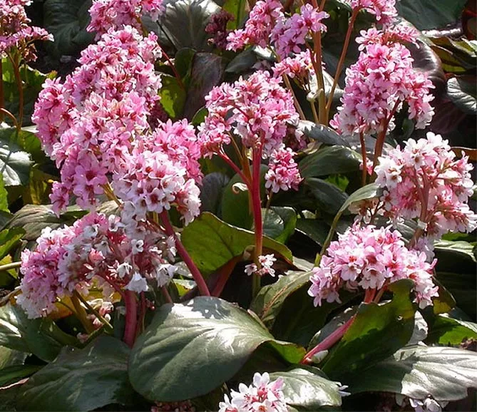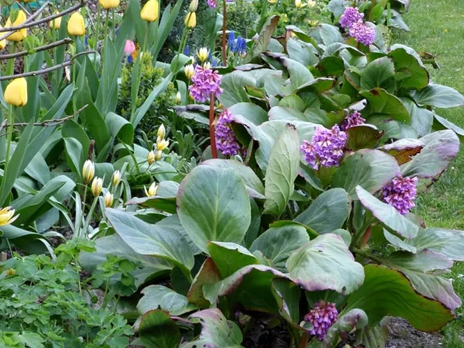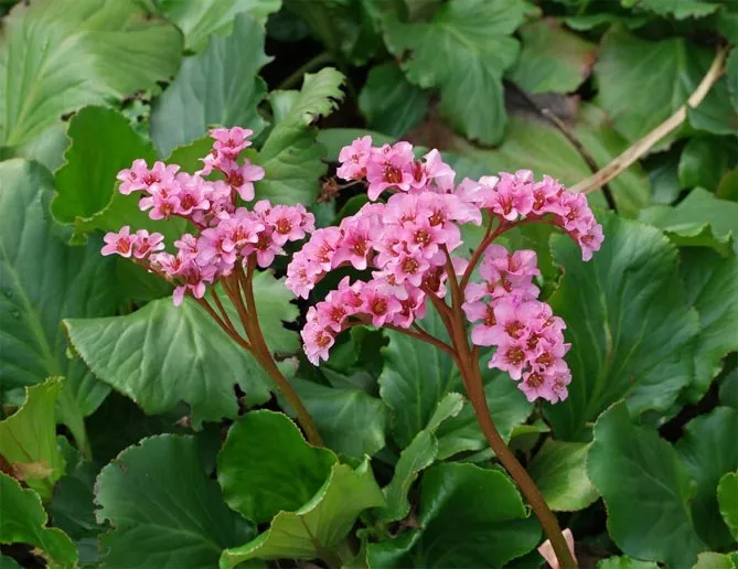 Bergenia crassifolia або бадан товстолистий досягає близько 30 см у висоту, цвітіння починається вже у березні.