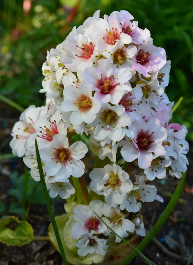 На перший погляд рослина з листям у формі серця може здатися непомітною – воно невисоке, дає лише один пагін із суцвіттям. Однак під час сезону цвітіння, який припадає на весну, бадан виглядає просто чарівно. На пагоні утворюється безліч красивих, пурпурно-рожевих квітів. Вони приваблюють багато видів комах-запилювачів – бджіл, метеликів. Сам пагін нагорі утворює багато маленьких розгалужень, тому все суцвіття створює волоть із дрібних дзвоникуватих квітів, розташованих на червонуватому стеблі. Це дуже цікавий кольоровий елемент композиції для клумб, рабаток.