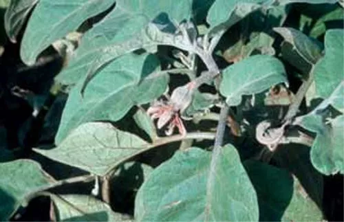 При вирощуванні баклажанів може спостерігатися швидке в'янення рослин, найчастіше в початковий період плодоношення. Це викликано гниллю основи стебла. Характерною ознакою цього захворювання є потемніння біля основи стебла, яке в цьому місці звужується і рослина гине. Захворювання викликається грибком Didymella lycopersici. Цьому зараженню сприяє низька температура навколишнього середовища (1-15 °C). Старі рослини, що знаходяться в періоді плодоношення, більш сприйнятливі до захворювання.