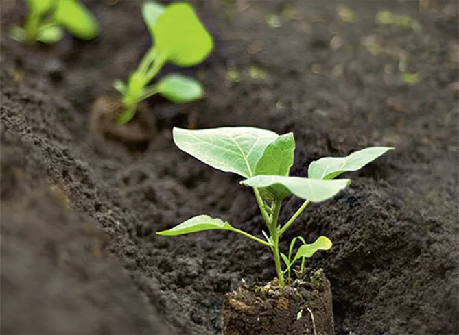 У зв'язку з тривалою і складною регенерацією кореневої системи баклажанів рекомендується вирощувати цей овоч із горщикової розсади. Найкращі горщики для посадки розсади – діаметром 8-10 см, наповнені субстратом з верхового торфу.