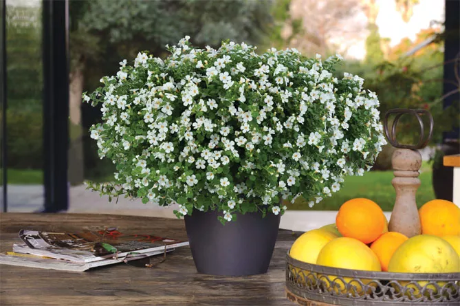 Bacopa diffusa належить до групи балконних рослин з крихітними білими квітами, які блищать на фоні ніжної, густої листя. Розлога сутера відмінно підходить для створення окремих композицій, посадок у горщиках і висячих контейнерах. Рекомендується через високу силу росту, міцні сильні стебла, рясні квіти. Її довгі, звисаючі або повзучі стебла покривають горщики красивим квітковим плащем.
