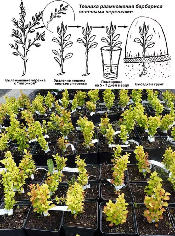 Посадку барбарису Тунберга можна виконувати насінням. Насіння легко доступне, кущ виробляє його щороку. Він легко сам поширюється насінням (наприклад, птахами). Отримана з насіння розсада барбарису не завжди повторює характеристики материнської рослини. Інші види зазвичай розмножуються живцями, вкоріненими в теплицях.