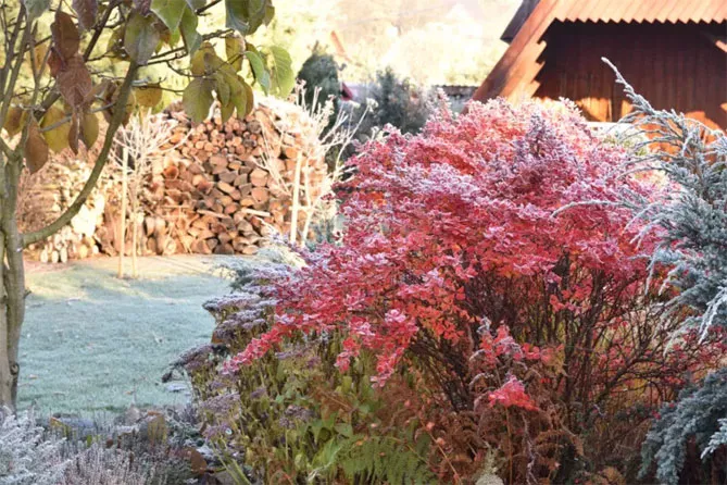 Фото. Чагарник у листопаді, вкритий легкою інеєю