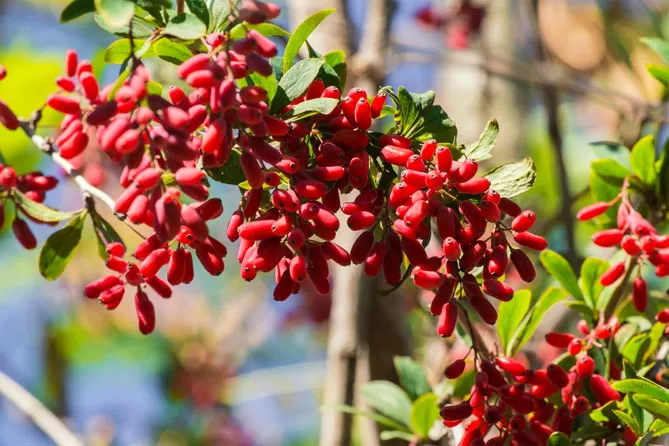 Ягоди барбарису зазвичай мають червоний або темно-синій колір, кислий смак.