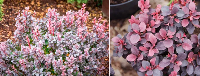 - Сорти барбарису з привабливою кроною, що характеризуються нижчим зростом – ідеальні для створення композицій на клумбах, рабатках з іншими декоративними кущами або багаторічниками.