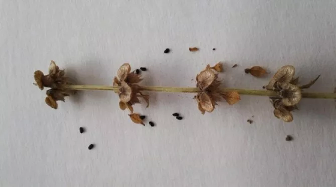 Самостійно зібрати насіння нескладно – його збирають із засушених квітів – квазі-волосків. Насіння базиліку розміром з мак, але має подовжену форму.