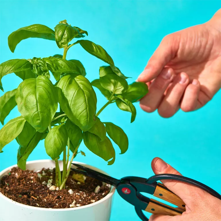 Таким чином, ми не тільки будемо споживати найсоковитіші та найароматніші листки, але й допоможемо рослині кущитися. Обрізка базиліку важлива ще з однієї причини – рослина не повинна зацвітати. Після цвітіння трава втрачає силу аромату та смаку, через це верхівки пагонів потрібно регулярно обрізати. Листки, звичайно, призначені для споживання. Правильна обрізка призводить до щільної та компактної форми рослини.