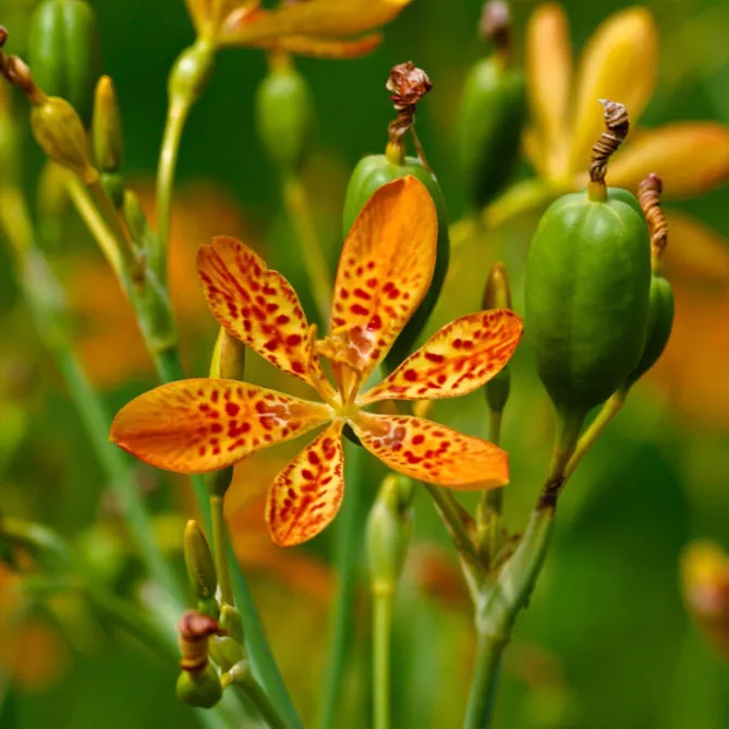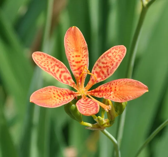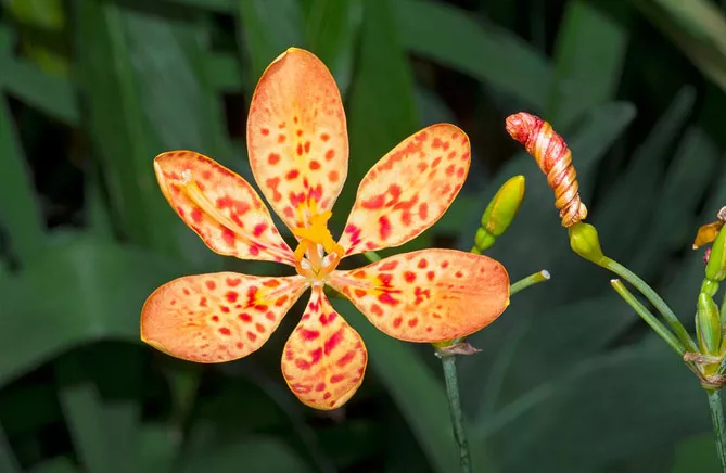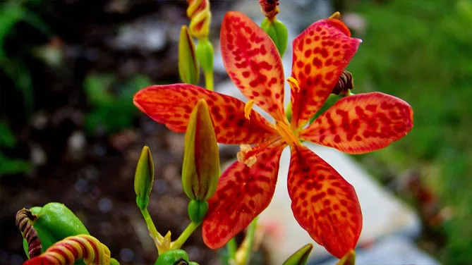 Це витривале багаторічне рослина, родом з Азії саджають на клумбах, бордюрах, у рокаріях або горщиках. Тигровий ірис беламканда утворює пучок вузьких віялоподібних листків, але особливо декоративний він влітку завдяки своїм гарним оранжево-червоним квітам, що нагадують крапчасту шерсть тигрів та леопардів. Дізнайтеся, як проводити вирощування беламканди з насіння, посадку та догляд, подивіться фото та опис квітки. Не складніше у догляді, ніж садові іриси, ця рослина заслуговує місця в саду.