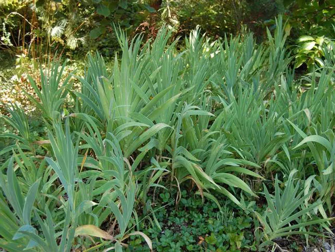 Потім поділіть за допомогою гострого інструменту, розрізавши кущик на 2-3 частини. Швидко пересадіть їх на нове місце, кореневище саджають майже заподлиць і іноді навіть трохи вище рівня землі. Полийте, щоб ґрунт осів і зволожував корені.