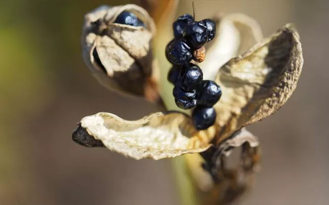 Стручки, які широко розкриваються у блискучі чорні насінини, часто використовують у сухих букетах.
