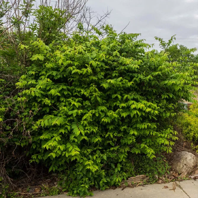 - Листя – зелене, довжиною 6-8 см, супротивне, оберненояйцеподібної або овальної форми, з дрібними зубцями. Восени набуває гарного забарвлення, в якому поєднуються блідо-жовтий, рожевий, яскраво-оранжевий, пурпурово-червоний та темно-гранатовий кольори.