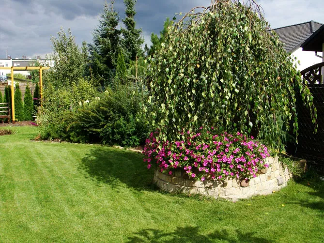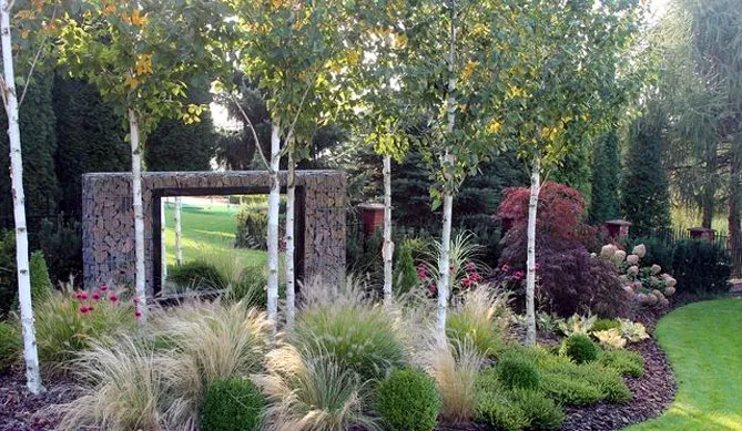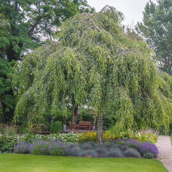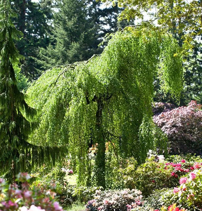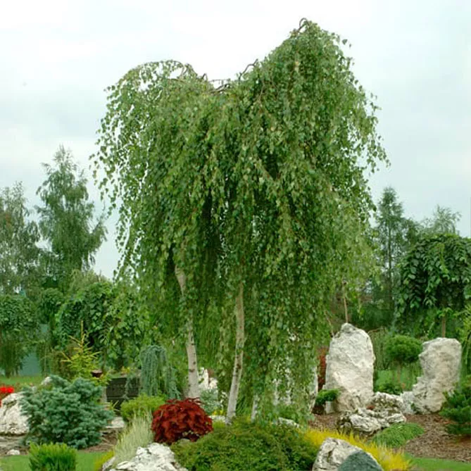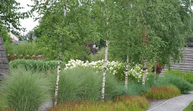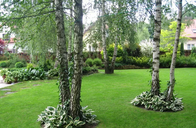 Це всім відоме, але дуже декоративне дерево з легким силуетом і гнучкою витонченою постаттю надає романтизму саду в будь-яку пору року. Ефектно виглядає посаджена перед живою огорожею або гаєм хвойних дерев з темно-зеленою або блакитнуватою хвоєю – тонкі гілки берези, що гойдаються на вітрі, дозволяють оцінити глибокий зелений фон.