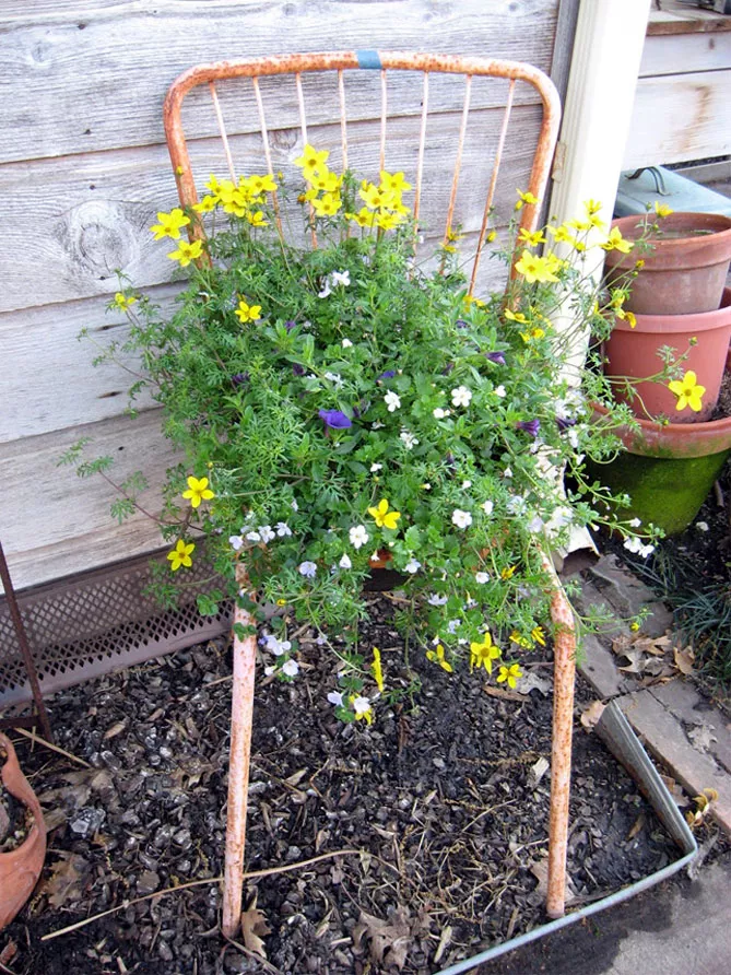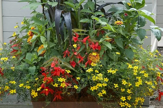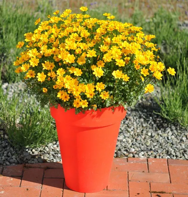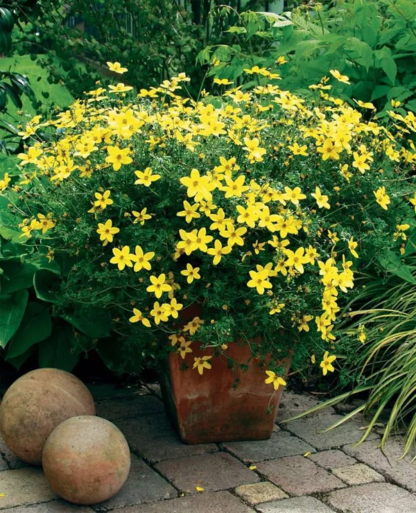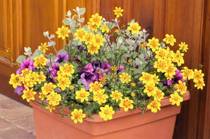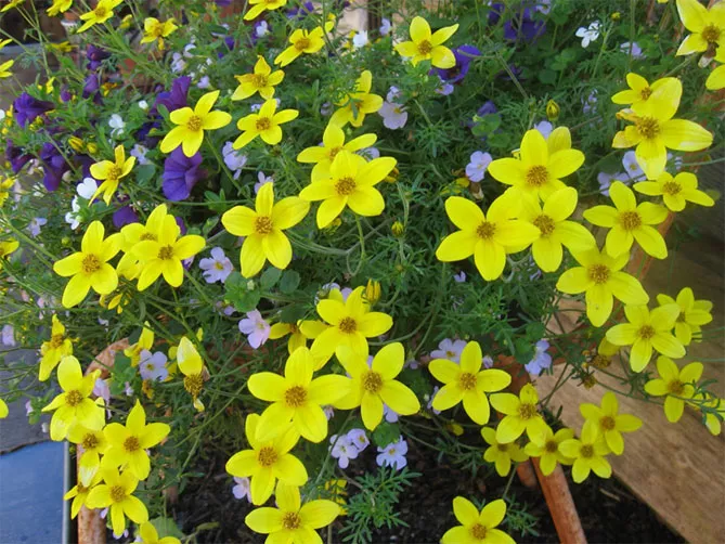 Фото. На наступних фотографіях представлений біденс у композиціях з різними рослинами в горщиках.