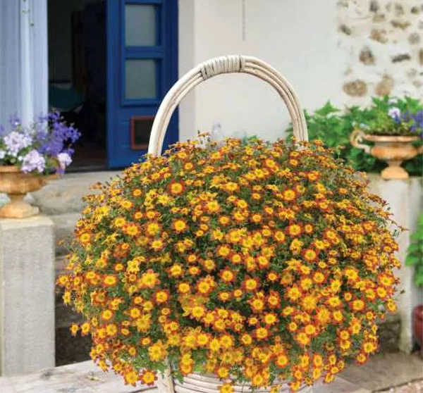 - «Флайр» Flair – ампельный сорт биденса характеризуется сильным ростом, имеет крупные, махровые или полумахровые цветки, цветет очень обильно.