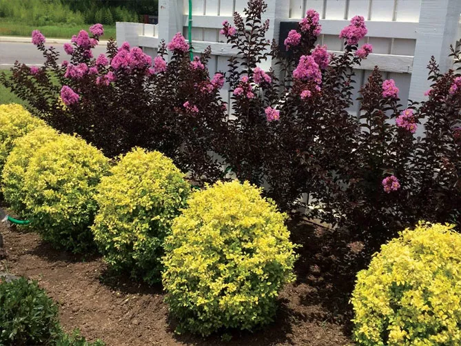 Для гарної дикої квіткової композиції варто скористатися перевагами гарного листя та приємного цвітіння, дозволяючи чагарнику вільно розвиватися. Поруч можна посадити наступні багаторічники: