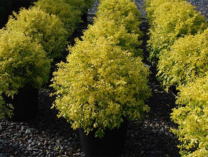 Вічнозелене або напіввічнозелене листя, забарвлене у золотий або кремовий колір, служить фокусом для виділення інших кольорів, сходів або статуї, особливо якщо сформувати їх у вигляді топіарію.