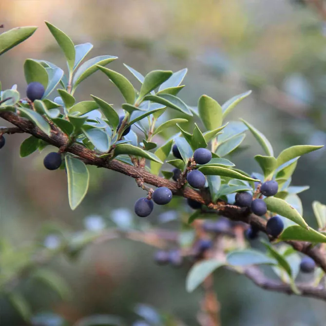 Цей сильно розгалужений чагарник, коли вільно росте густою масою, утворює чудовий купол, ширина якого більша, ніж висота. Квіти з’являються у першій половині літа, медоносні, ароматні, змінюються синьо-чорними ягодами, які взимку годують птахів. Висота у зрілості – 1,8 м.