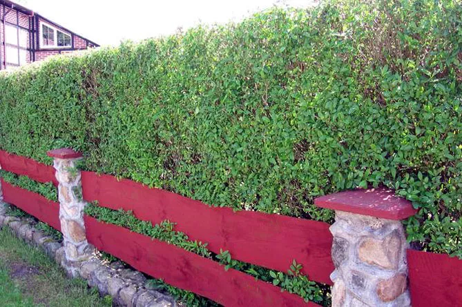 Фото. Красиво підстрижена жива огорожа з бирючини звичайної «Атровіренс» (Atrovirens) вносить у сад структуру.