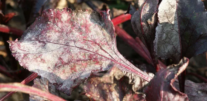 Хвороба листя буряка борошниста роса викликається грибом (Erysipha betae). Перші симптоми борошнистої роси на буряку можна помітити в кінці липня, але зазвичай це відбувається в кінці серпня.