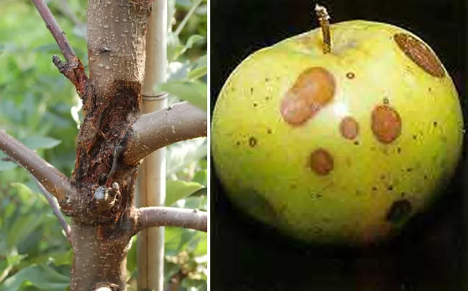 Яблуні можуть уражатися фітопатогенною паличкоподібною бактерією Pseudomonas syringae pv. Papulans.