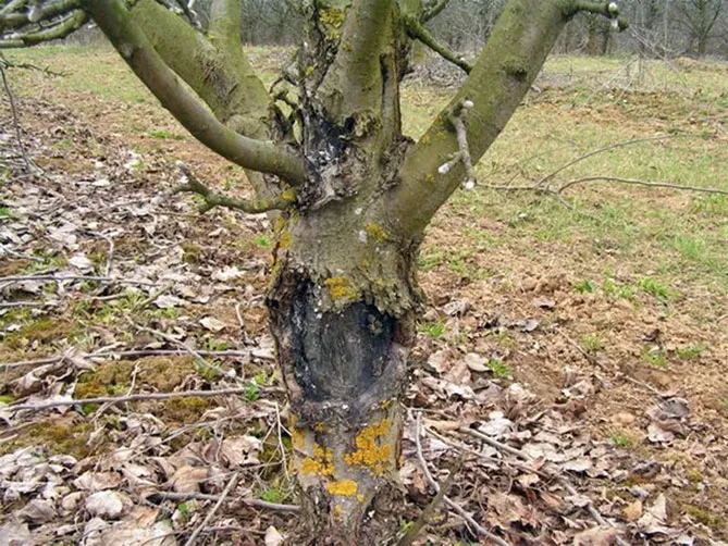 Фото. Повільна загибель дерева в результаті ураження стовбура яблуні фітофторозом.