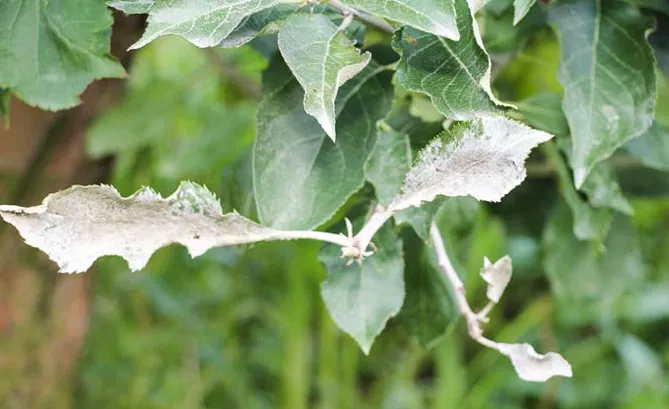 Сріблястість листя або хвороба «молочний блиск» викликана грибком Chondrostereum purpureum. Яблуня заражається через відкриті рани, що виникають внаслідок травм гілок через мороз, обрізки.