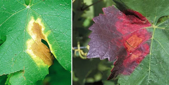 Найпоширеніший вид фізіологічних захворювань на виноградниках – залізний хлороз. Це захворювання пов'язане з недостатнім надходженням доступних форм заліза в рослину. Часта причина захворювання – надлишок у ґрунті активної вапни, яка, зв'язуючи залізо, робить його недоступним для виноградного куща.