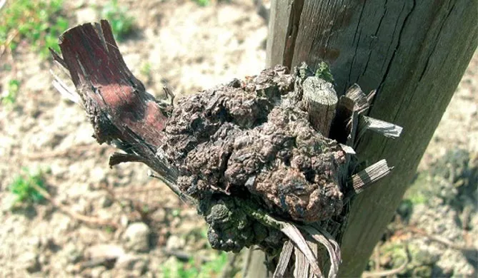 Зараження винограду відбувається через ґрунт або при обрізуванні інфікованим інструментом. Бактерія повністю заражає кущ, але проявляється лише в окремих його частинах. Бактерії викликають утворення пухлинних клітин винограду, що починають неконтрольований поділ.
